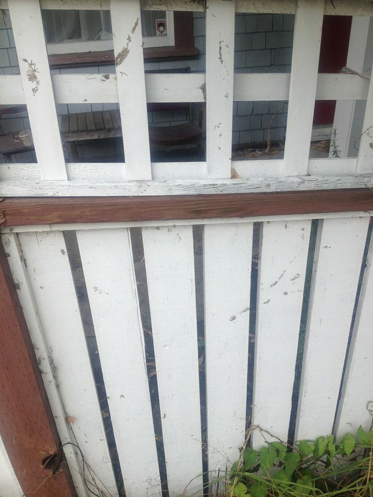 Fence Post CapBut the other night was the topper. Over the years a fencepost cap has been kicked off, one panel has been kicked in twice, a panel on the other side too… Then another panel Thursday night. But it wasn’t night. It was dinnertime. We heard a ‘bang’ and ran outside to find the fence slats flapping. And the loser just kept walking, hammer-pants and baggy rasta-striped tank top flapping in the wind. I stood, barefoot on theFence Panel the 1st wet sidewalk,Fence Panel the 2nd helplessly watching him head up the hill. He looked back periodically, maybe thinking I would follow, then crossed the street and ducked into a lane. No doubt on his way to one of the adjacent neighbourhoods where he Fence Panel the 3rdprobably lives with his parents, petty thieving drug addicts themselves. Later I chastised myself: I should have had my phone. I should have taken video. I should have photographed the damage before Sean and I pounded the fence posts back into place, eager to restore order and erase the evidence of the assault on our property. But I didn’t. L’esprit de l’escalier… those things you think of doing or saying when it’s too late.